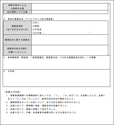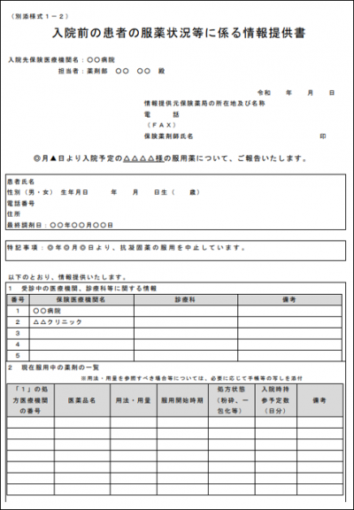 ●入院前の患者の服薬状況等に係る情報提供書(別紙様式1-2)