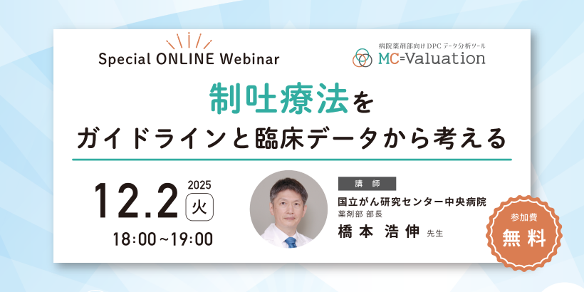 病院薬剤師向けオンラインセミナー「制吐療法をガイドラインと臨床データから考える」を開催いたします。